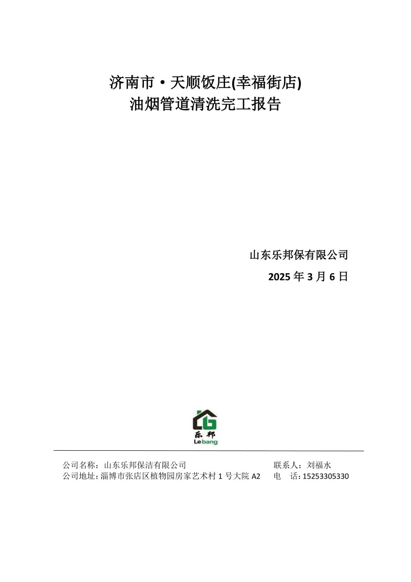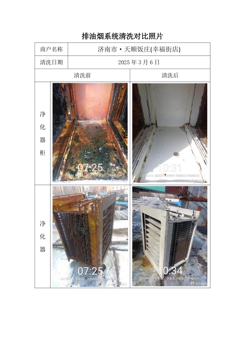 濟(jì)南市·天順飯莊(幸福街店)清洗報(bào)告25.3.6