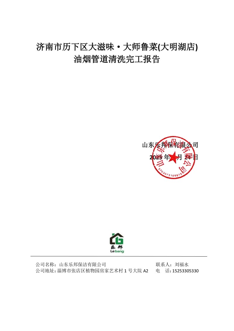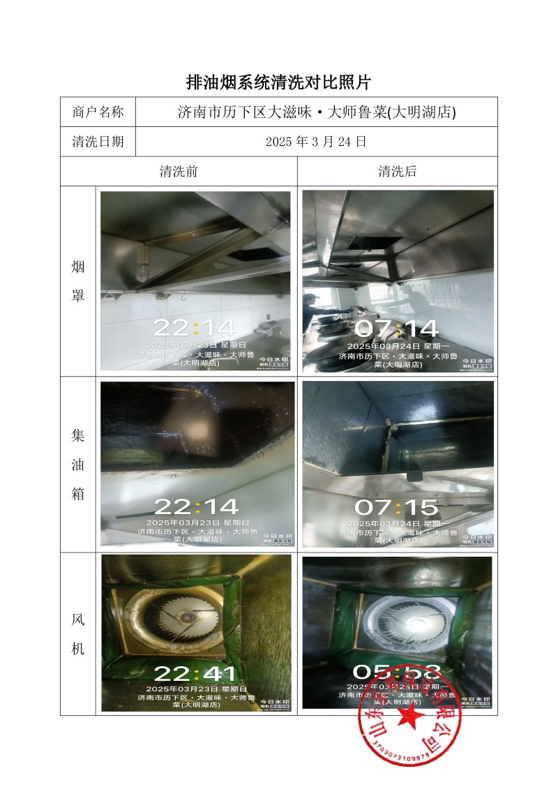濟南市歷下區(qū)大滋味·大師魯菜(大明湖店)清洗報告25.3.24