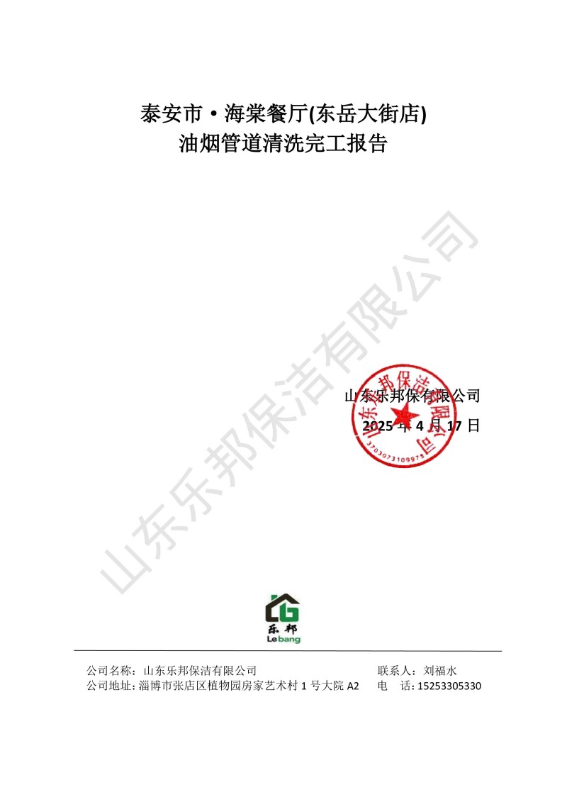 泰安市·海棠餐廳(東岳大街店)清洗報告25.4.17