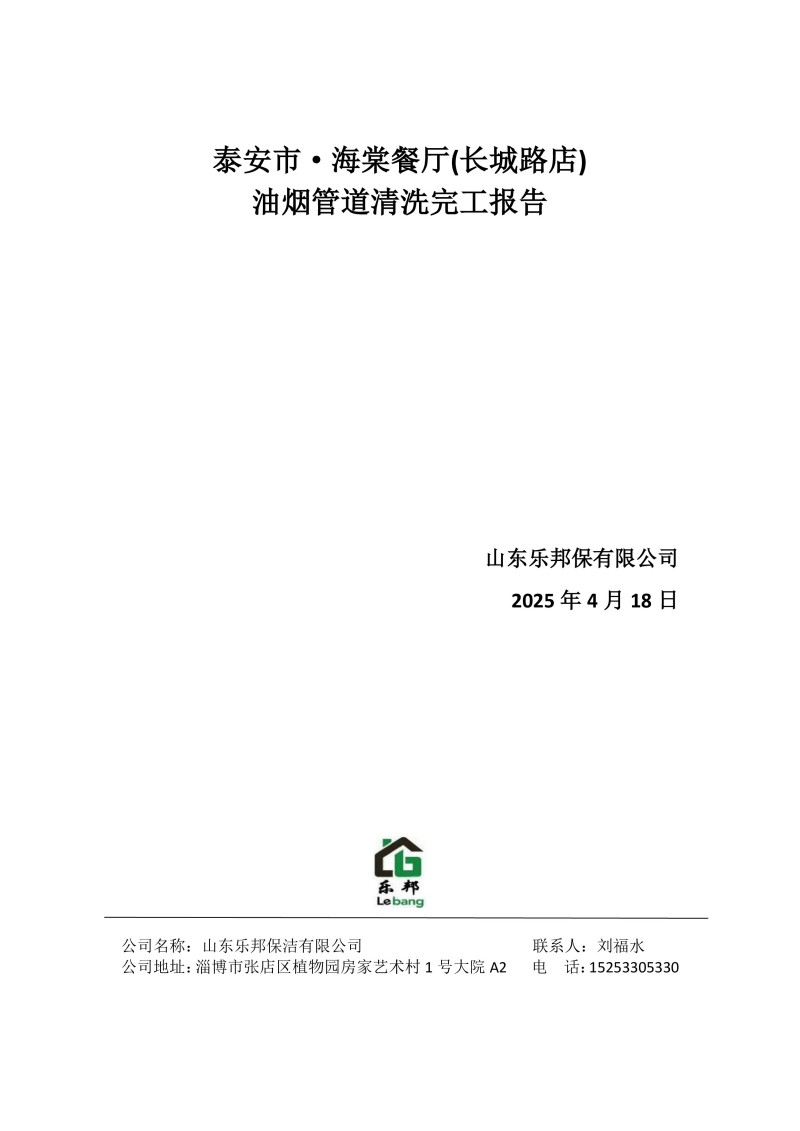 泰安市·海棠餐廳(長城路店)清洗報(bào)告25.4.18