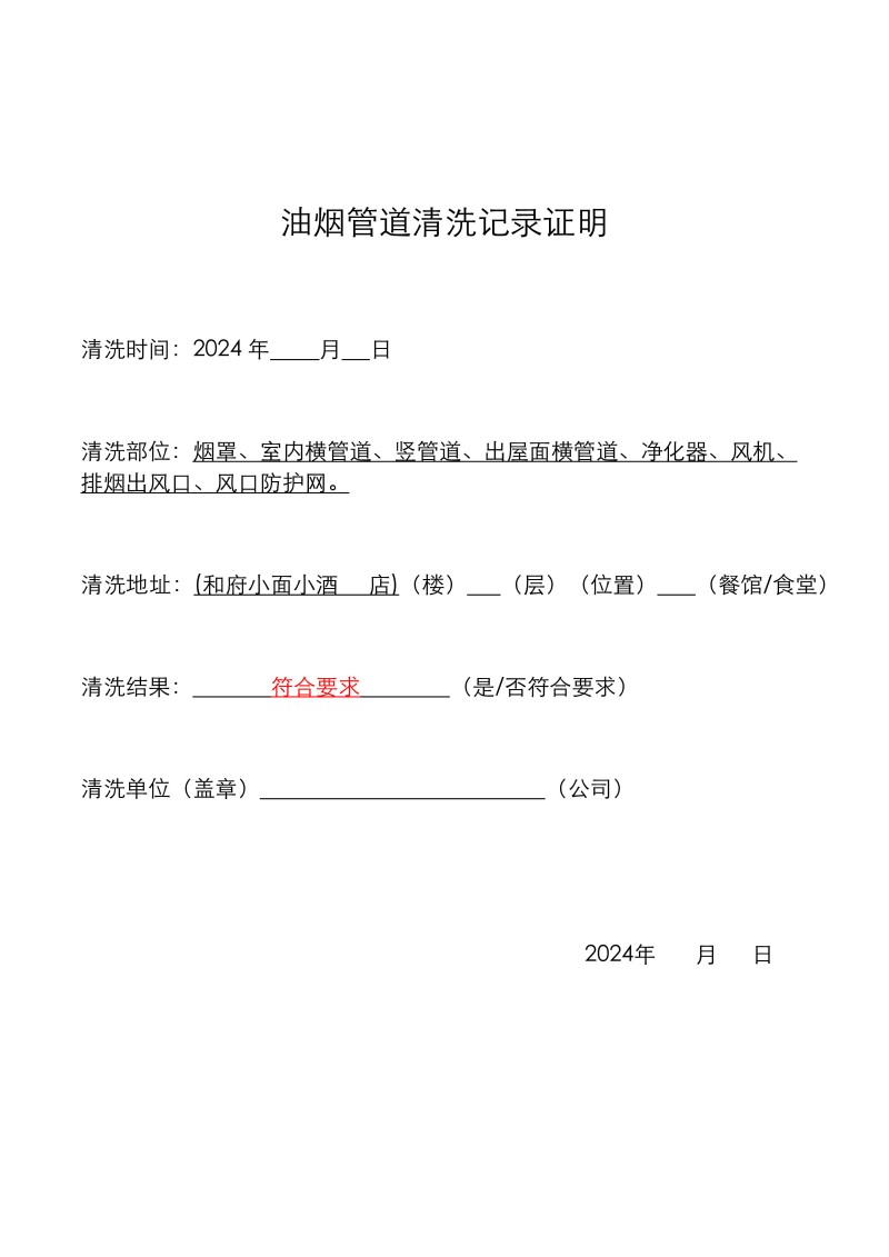 萬(wàn)象匯和府小面小酒清洗報(bào)告25.1.5