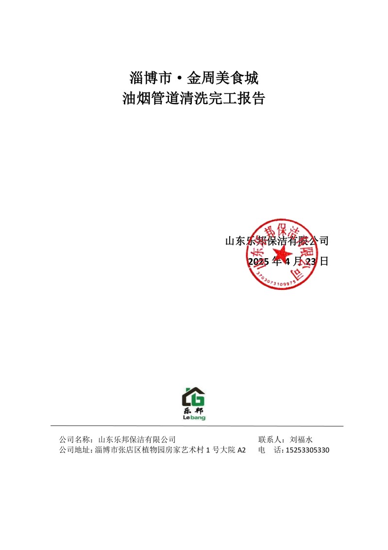 淄博市·金周美食城清洗報(bào)告25.4.23
