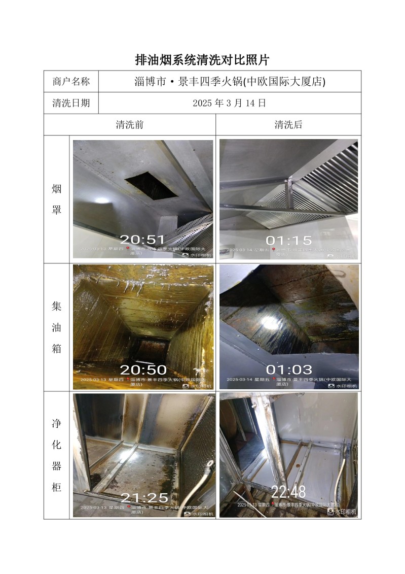淄博市·景豐四季火鍋(中歐國(guó)際大廈店)清洗報(bào)告25.3.14