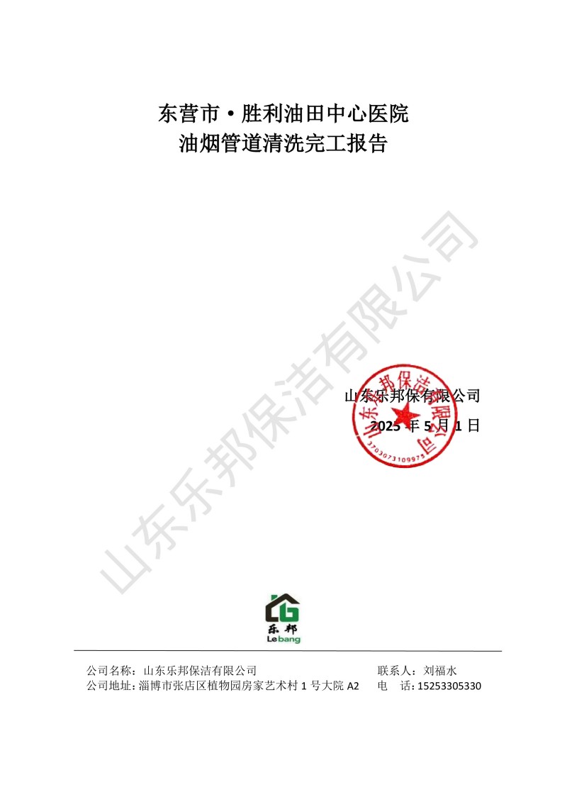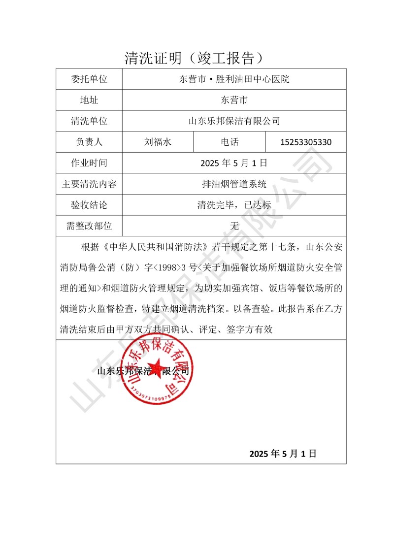 東營市·勝利油田中心醫(yī)院清洗報告25.5.1