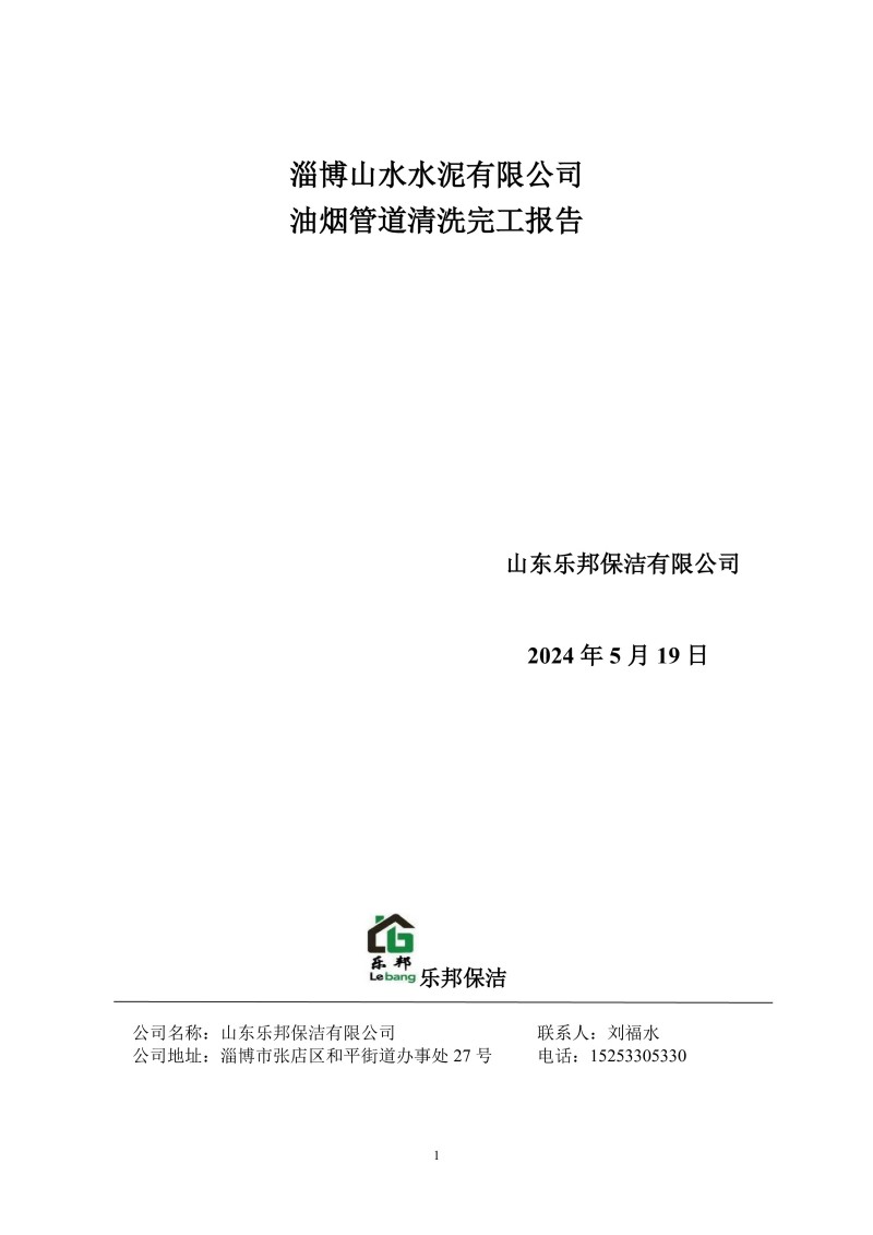 淄博山水水泥有限公司清洗報(bào)告24.5.19