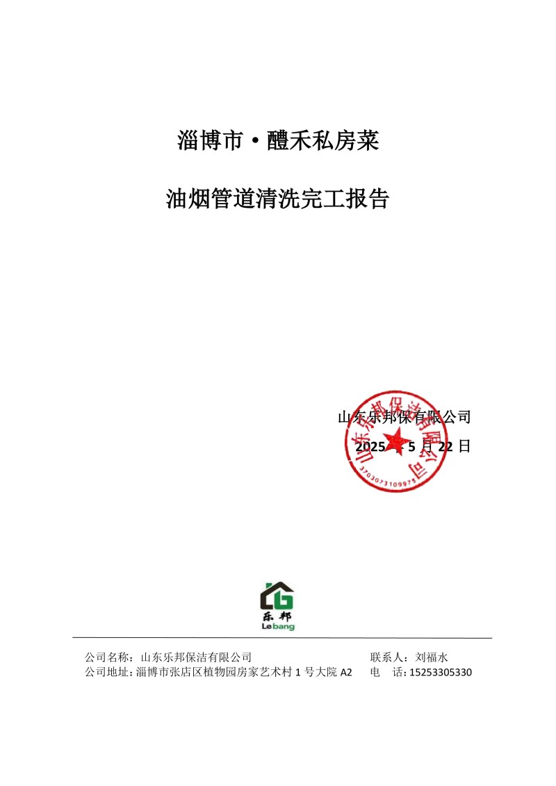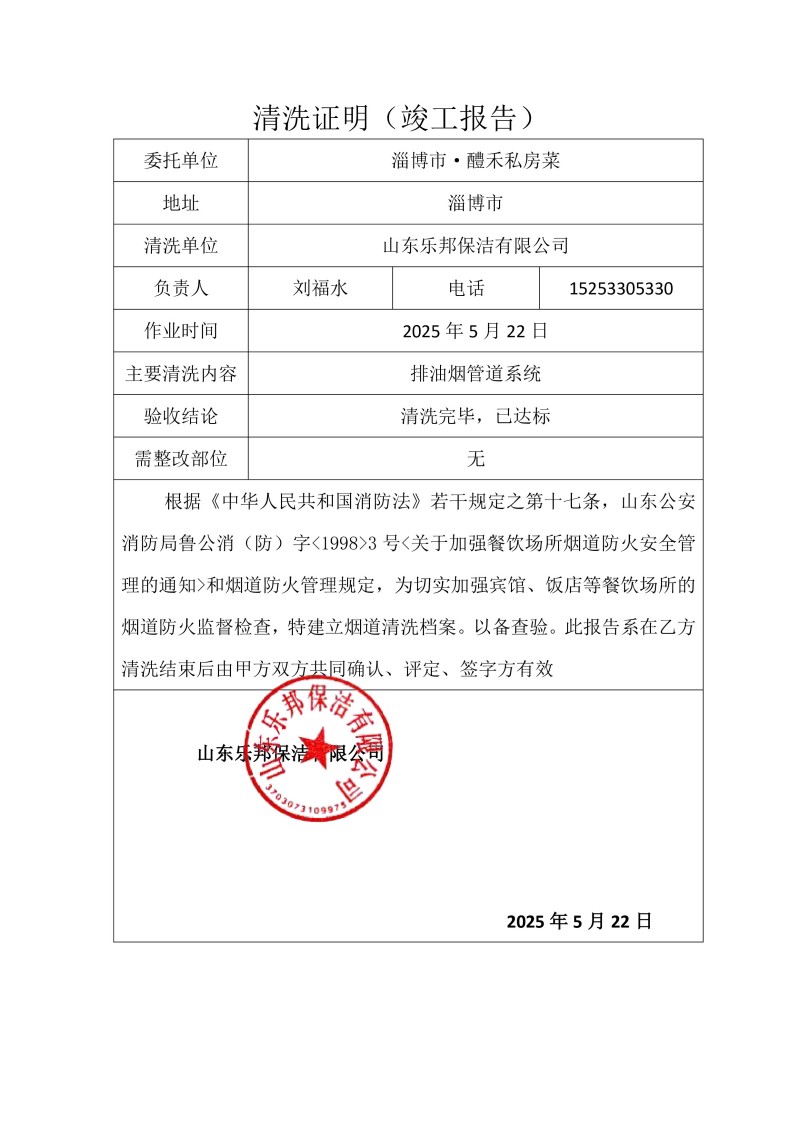 淄博市·醴禾私房菜清洗報(bào)告25.5.22