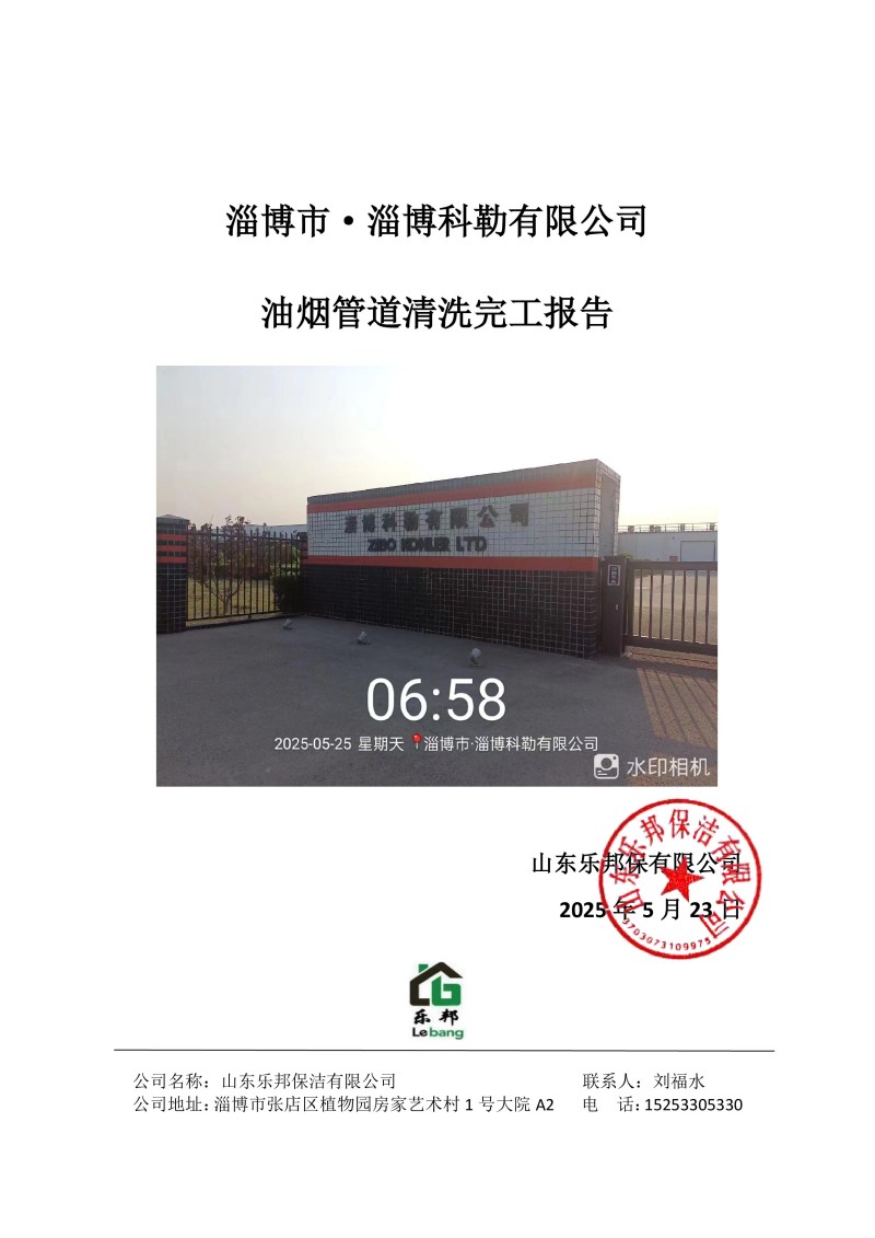淄博市·淄博科勒有限公司清洗報告25.5.25
